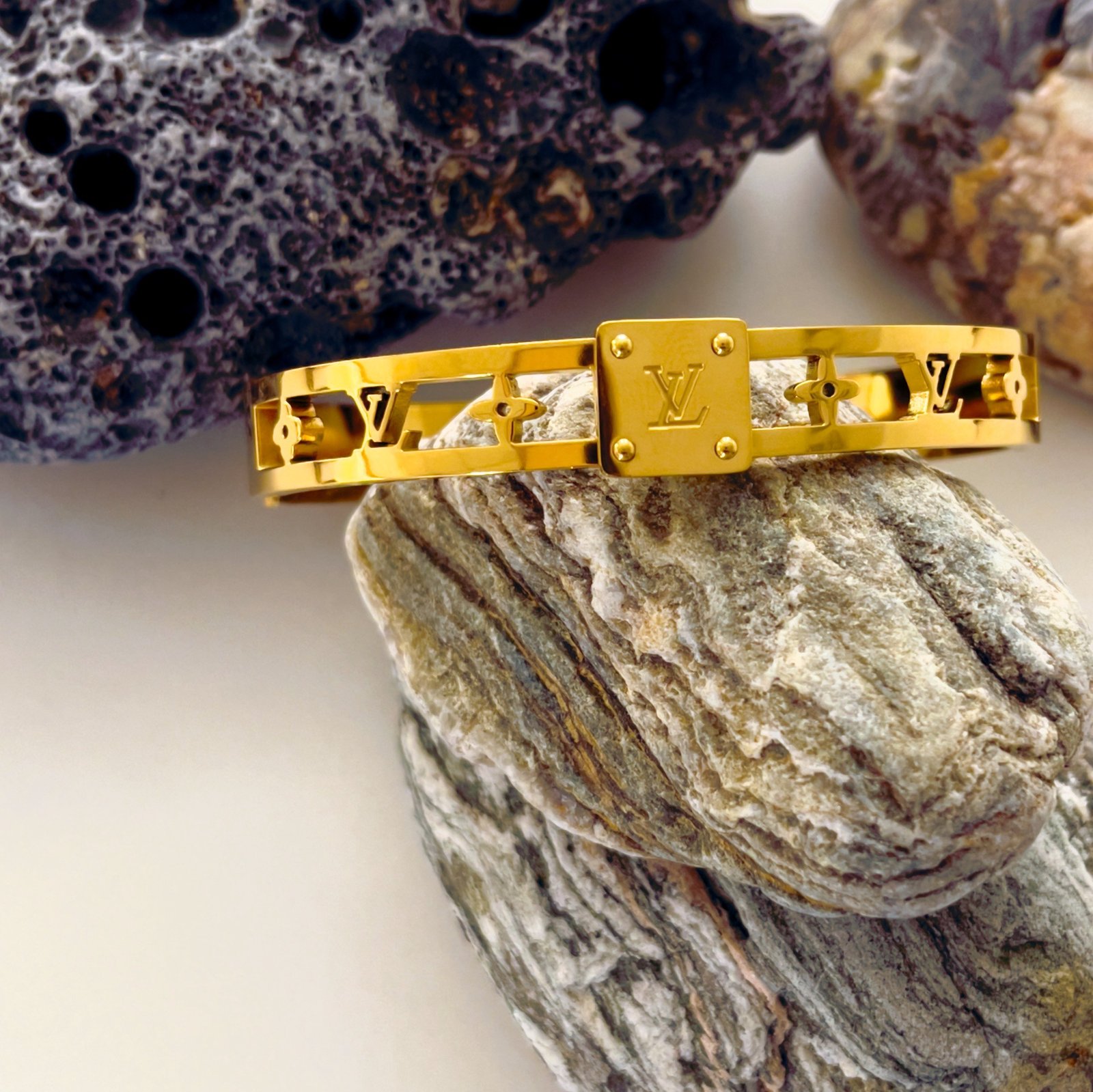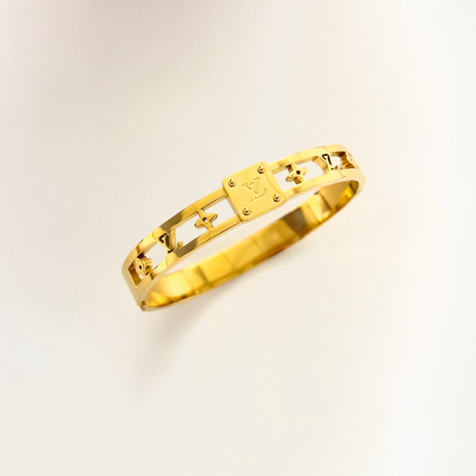 Discover the perfect blend of modern edge and timeless elegance with this gold-plated stainless steel emblem bracelet—crafted to meet the demands of your busy lifestyle. Featuring sleek cutout details and a distinctive emblem at the center, this piece offers a subtle yet confident statement. Built from tarnish-resistant, hypoallergenic stainless steel, it’s designed to withstand your daily hustle without losing its shine.
