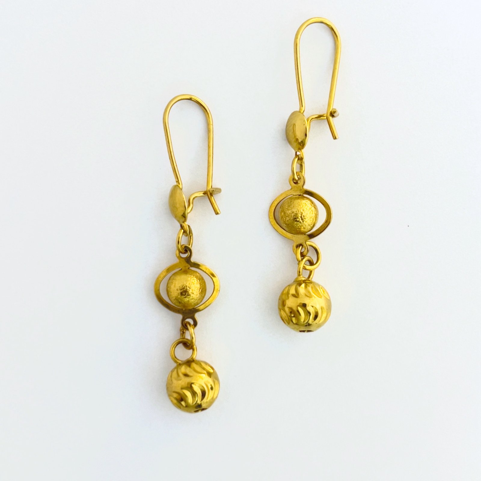 Add a sleek, modern touch to your style with these gold-plated stainless steel sphere earrings. Each dangle earring features an elegantly designed spherical charm, striking the perfect balance between minimalist sophistication and everyday practicality. Crafted from premium stainless steel with a durable gold plating, these earrings are hypoallergenic, tarnish-resistant, and comfortable for all-day wear.